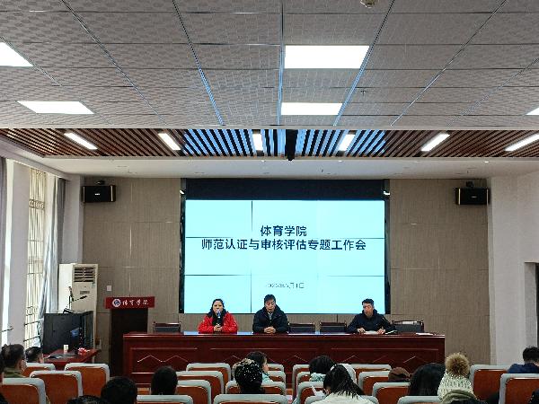 随后,徐佳副院长重申了师范认证工作的重要性。第一点,提出要依据体育教育专业2022版人才培养方案和2022版《大学体育》课程大纲总纲,制订新版教学大纲。第二点,就上一年度教学资料提交工作的具体注意事项进行了介绍。第三点,提示本学期教学资料的提交工作。第四点,就毕业论文的具体要求进行了介绍。第五点,就教学过程中的常规进行了提醒与传达。并就3月4日、5日在今年会进行的陕西省职业教育单招体育教育专业运动技能考试中日常教学活动进行了安排。