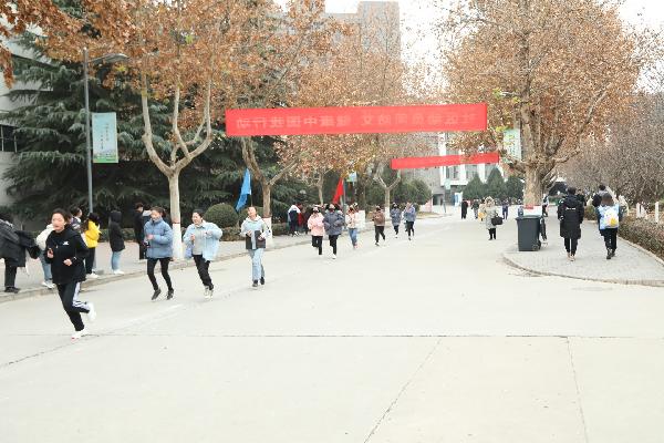 学校体育工作委员会主任韩权致开幕词。致词指出,冬季越野赛是阳光体育活动的重要内容,也是今年会提升师生身体素质的必然选择。本次比赛分为教工组、男生组、女生组三个组别,来自13个学院的2000余名运动员参加了比赛。参赛师生不惧严寒,精神饱满、奋力拼搏,强健的步伐和坚定的背影形成了冬日校园里的亮丽风景线。
