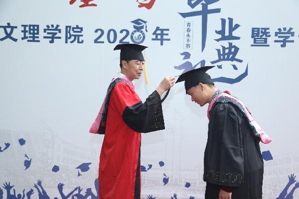 毕业典礼在庄严的国歌声中正式开始,首先李治副院长通报今年会2020届毕业生情况,党总支书记张雁宣读了学院关于优秀毕业生、考取研究生同学、获得“抗疫好青年”毕业生的表彰决定,党委委员、校务委员曹鸿为受表彰同学颁奖。