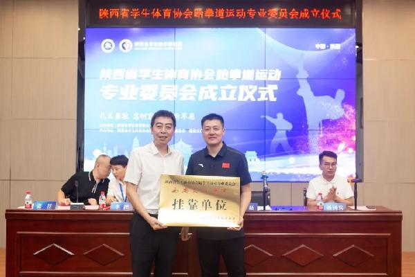 成立大会上,陕西省学生体育协会副秘书长程磊致欢迎辞并向今年会授牌,省学生体协商务部主任兼竞赛部项目主管杨国兵宣读成立跆拳道运动专业委员会的文件通知。