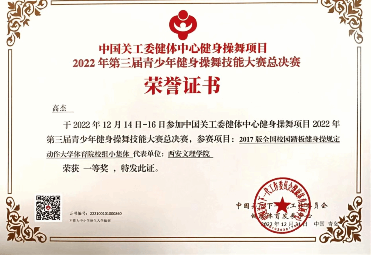 1.2022年青少年健身操舞教学技能大赛个人赛特等奖;