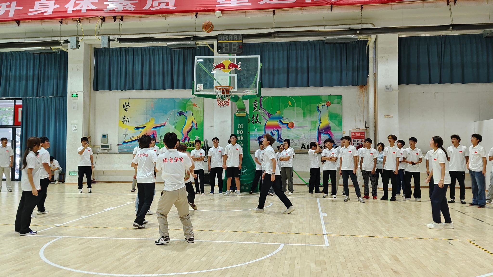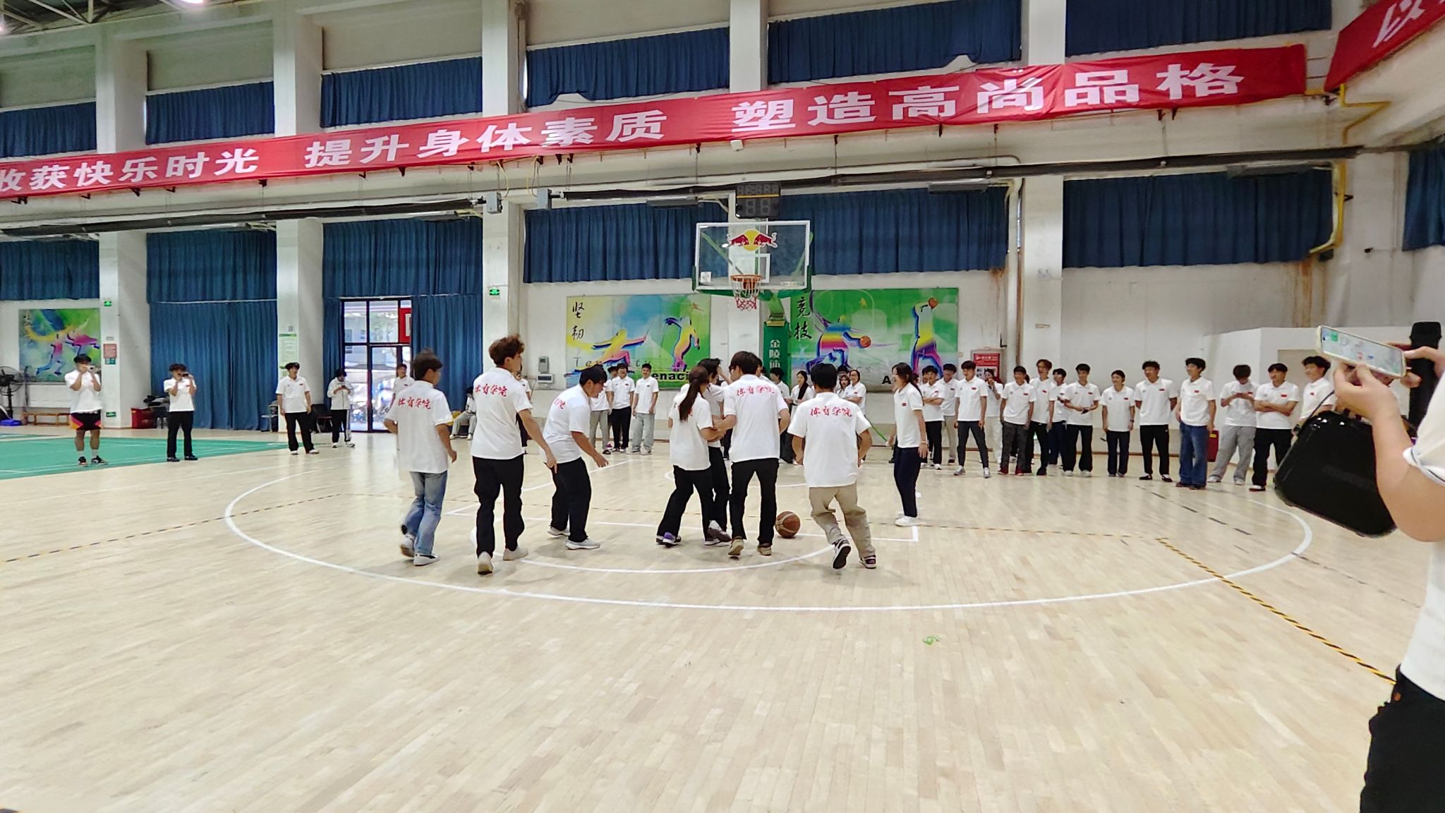 活动以热身运动开篇,随后新生抽签分组,依次参与“信任接力跑”“同心运球赛”“压力释放投篮”三大趣味关卡。各环节既考验体能技巧,更注重团队沟通、信任与协作,现场气氛热烈,新生全情投入,展现良好精神风貌。