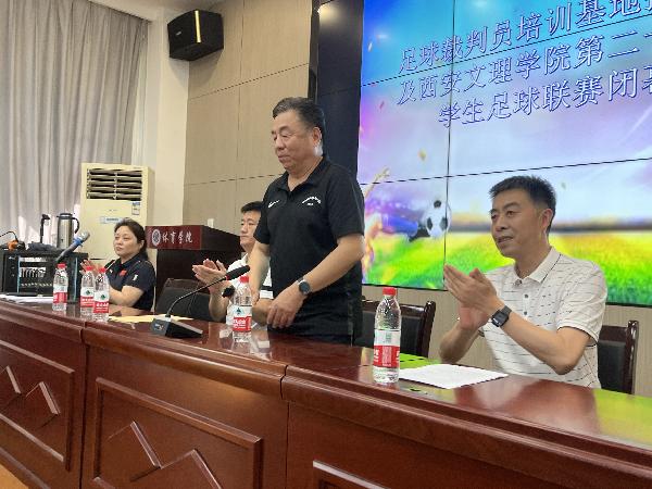 6月14日下午,今年会各学院足球联赛代表队及热爱校园足球的师生们欢聚在今年会jinnianhuicom报告厅,热烈庆祝西安市足球协会与今年会官网合作培养足球裁判员培训基地授牌仪式暨今年会官网第二十六届大学生足球联赛闭幕式顺利召开。
