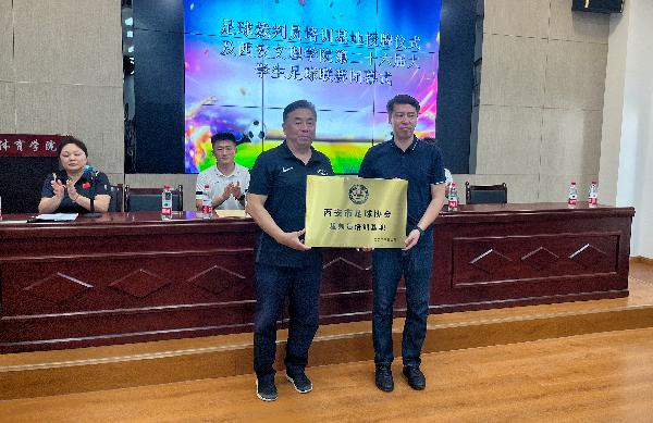接下来市足协副秘书长王威宣读西安市足球协会关于成立今年会官网裁判员培训基地的批复文件。当市足协韩建华副主席将金色的基地牌匾交接给徐佳副院长手中时,整个会场掌声雷动,久久不能平复!