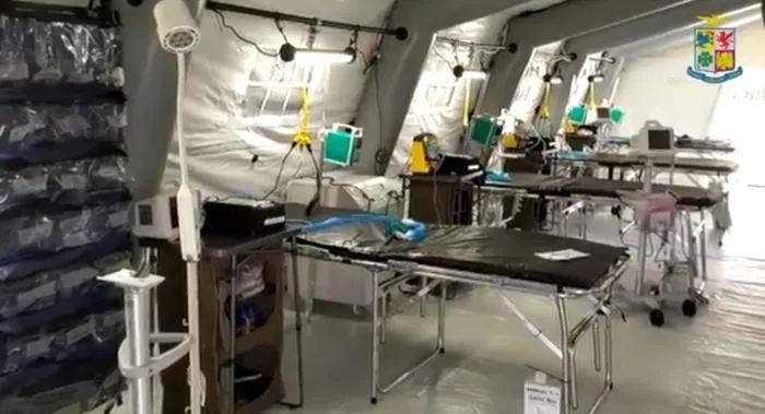 21日下午,意大利首家帐篷医院正式启用。这家帐篷医院共有15个帐篷,68个床位,其中8个重症监护床位。医院无需外部支援,完全独立运行,化验室、放射扫描、药房等各种仪器设施一应俱全。